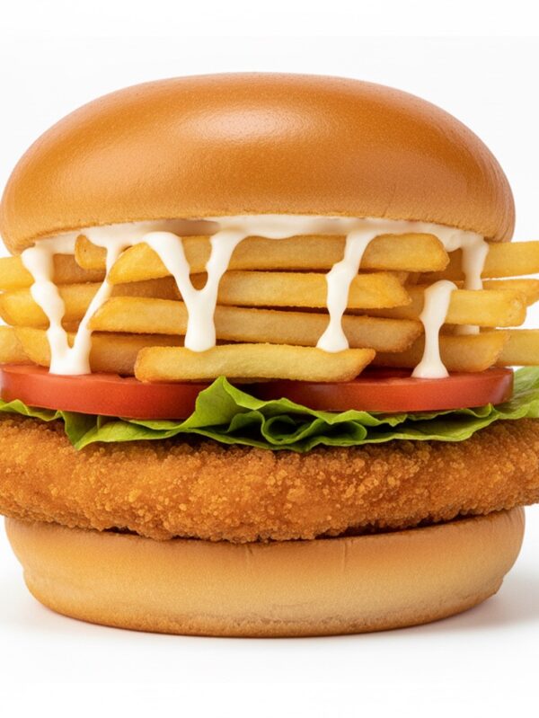 Bun al latte • Pollo • Insalata • Pomodoro • Patatine fritte • Maionese
